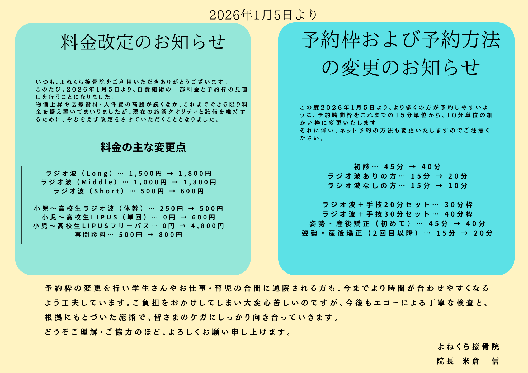 - 2025-12-11 2026年1月5日からの料金改定および予約枠変更のお知らせ