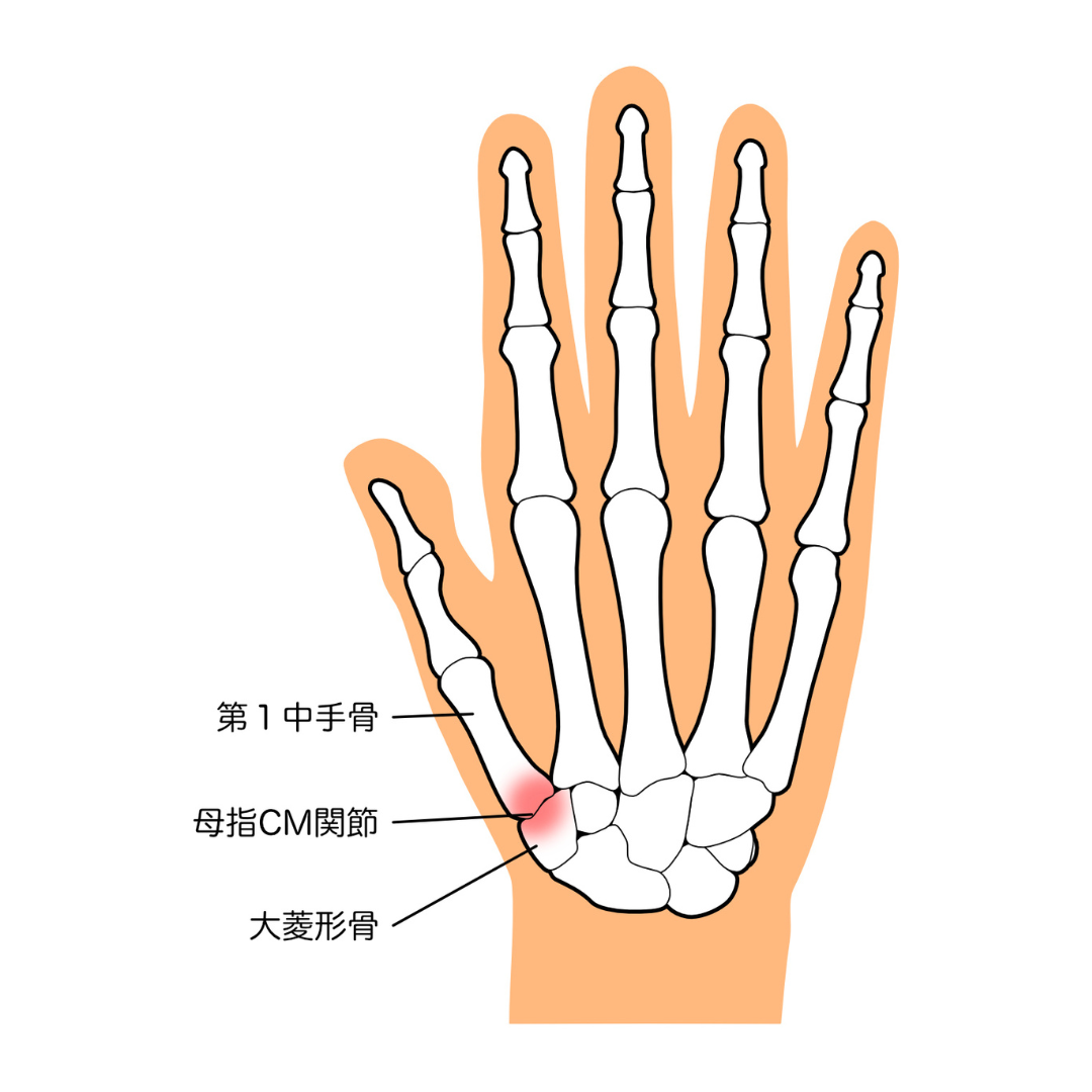 CM関節症は使い過ぎ・加齢・ホルモン変化などが関与し、関節の変形が徐々に進行します。