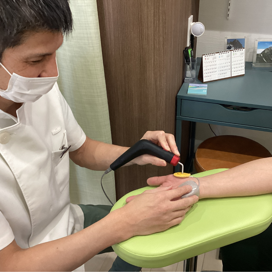 短時間で深部まで温め、周囲筋・靱帯のこわばり緩和と可動域の確保を目指します。 - ハイボルト(鎮静サポート)